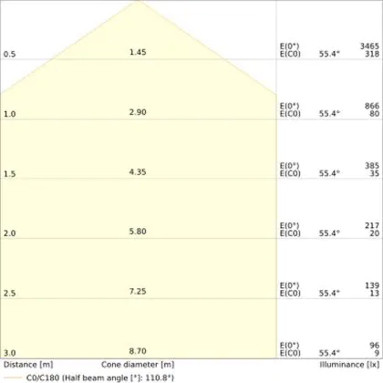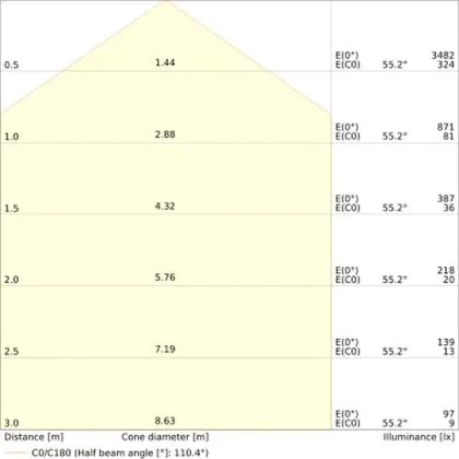 The Luminous Efficacy (lm/W) indicates how efficiently a light source uses energy. We divide the number of lumens by the wattage. The higher the number, the more efficient a product is in terms of energy consumption. LED lighting has a considerably higher lumen/Watt ratio than conventional lighting.