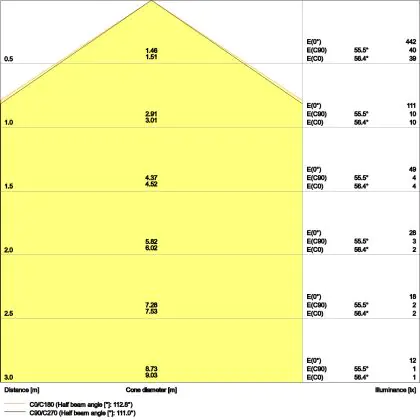 The colour code is a combination of colour rendering (CRI) and light colour (Kelvin). The first number indicates the colour rendering (1 = very poor colour rendering, 9 = maximum colour fastness). The second and third number contains the light colour. Example: the colour code 830 consists of good colour rendering (8) and warm white light (3000K). |