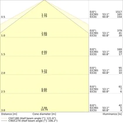 The colour code is a combination of colour rendering (CRI) and light colour (Kelvin). The first number indicates the colour rendering (1 = very poor colour rendering, 9 = maximum colour fastness). The second and third number contains the light colour. Example: the colour code 830 consists of good colour rendering (8) and warm white light (3000K). |