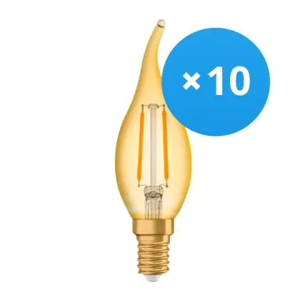 Multipack 10x Ledvance Vintage 1906 LED E14 Candle Gold 1.5W 120lm - 824 Extra Warm White | Replaces 15W