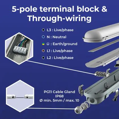 Multipack 12x Noxion LED Waterproof Batten Poseidon V3.0 18-30W 2340-4200lm - 830-865 CCT | 120cm - Through Wiring (5x2.5mm2)