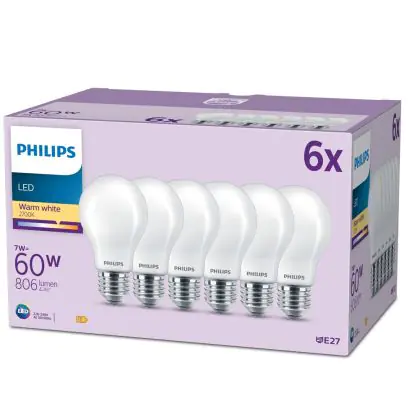Multipack 6x Philips Bulb LED E27 Pear Frosted 7W 806lm - 827 Extra Warm White