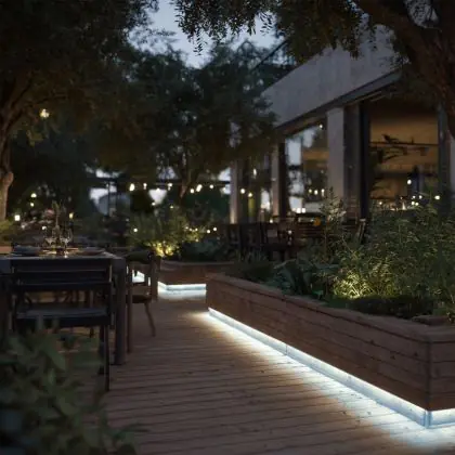 Lighting with a sensor only turns on when it receives a specific signal. This reduces energy costs. The (built-in) sensors respond to darkness (twilight switch) and/or movement (motion sensor).